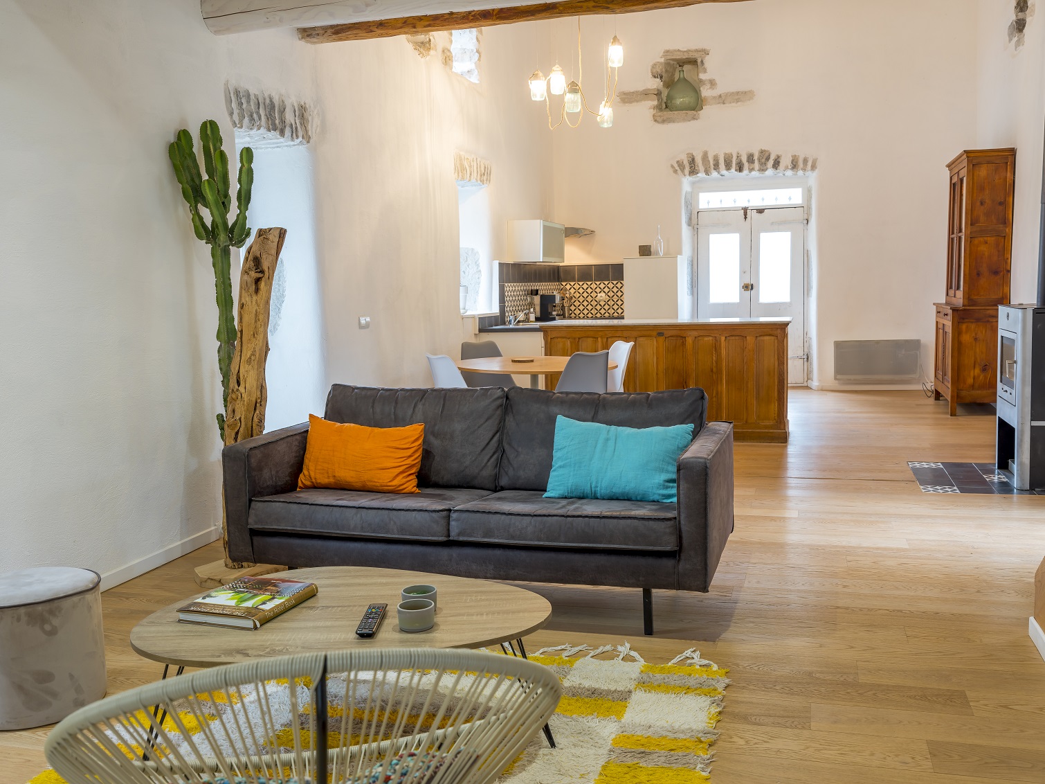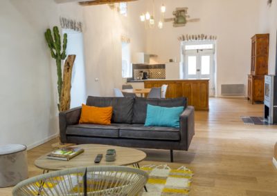 - L’espace proposé à la location est une ancienne magnanerie indépendante dans un mas. Elle date de 1837. La surface totale est de 90m2. Au rez-de-chaussée, une pièce de 62m2, avec la cuisine intégrée sous son plafond cathédrale, son espace repas, et plus intime la partie salon, avec son sofa et son téléviseur grand écran. En avant saison, pour les journées plus fraîches, vous serez accueillis par un bon feu dans le poêle à bois.
